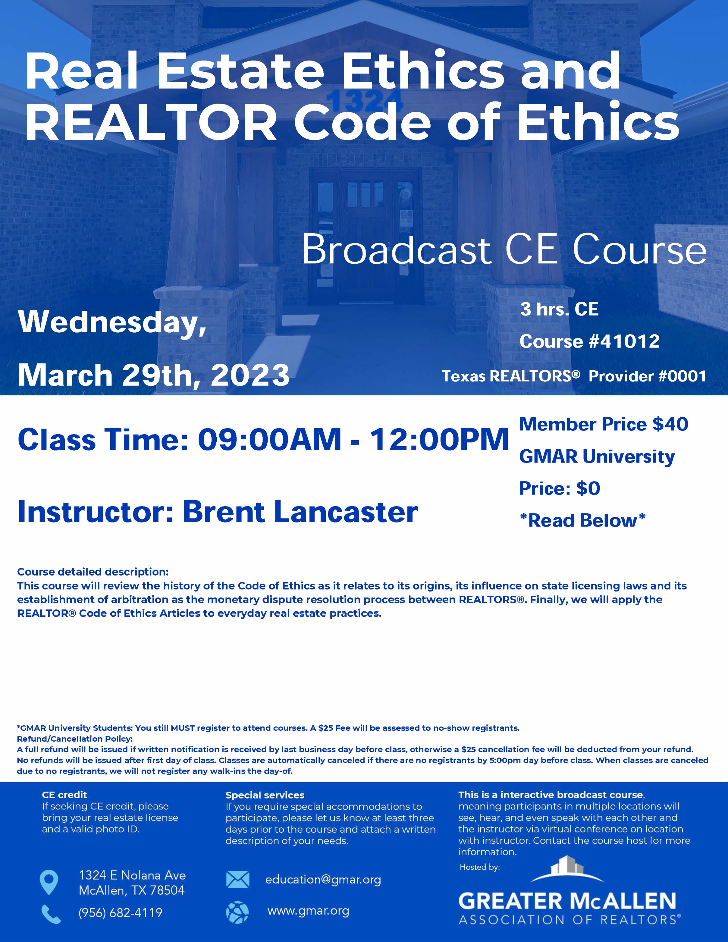 Course #:41012 Provider #1Texas REALTORS® Instructor Brent Lancaster CE Credits 3