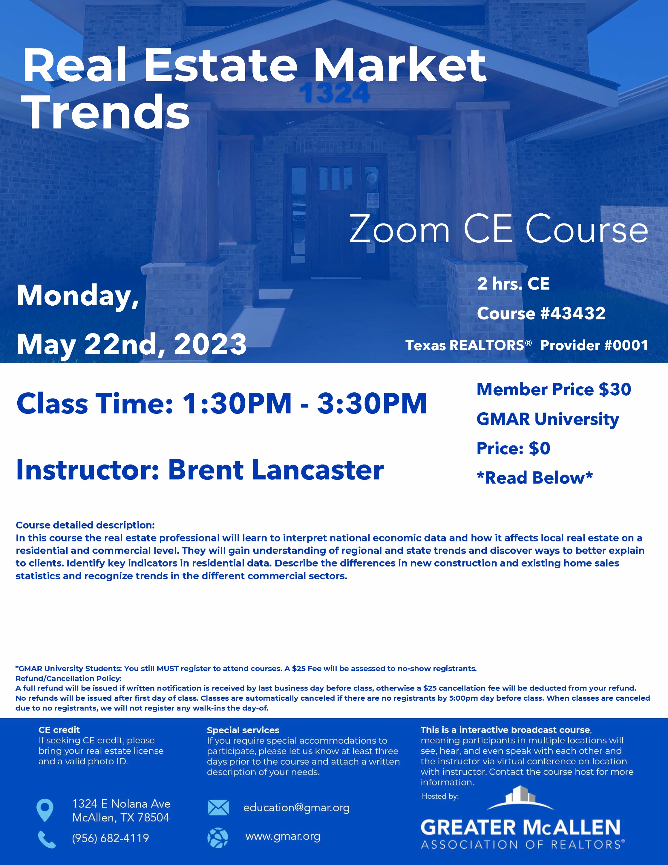 *GMAR University Students: You still MUST register to attend courses. A $25 Fee will be assessed to no-show registrants.
