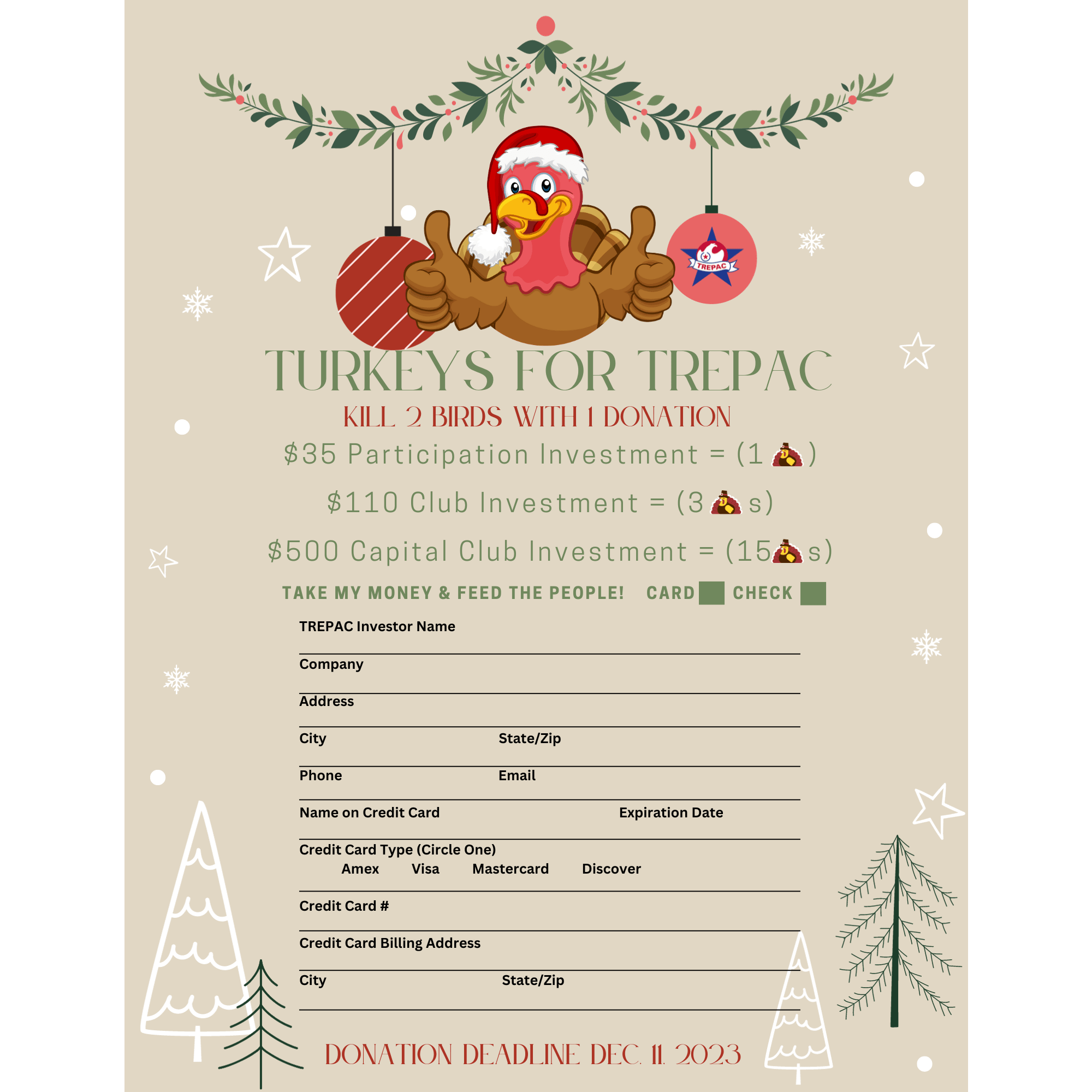Turkeys For TREPAC 110 Club (3 Turkeys)